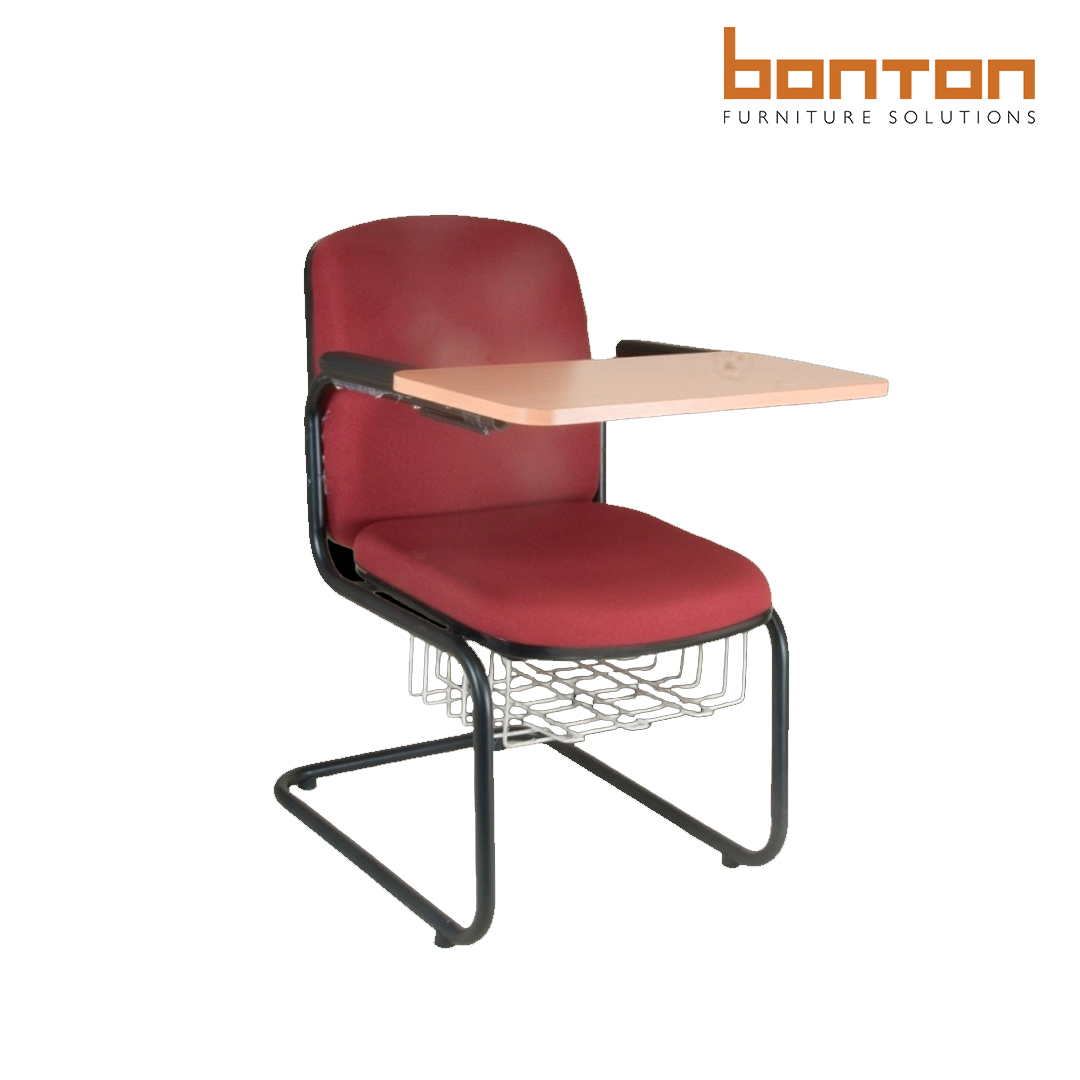Ergo with Full Tablet- Size: Total Height-850mm, Seat Height: 440mm, Tablet Height: 665mm, Depth 270mm & Width:550mm. Under Structure cantilever type MS cold rolled close annealed Tube 1.6 mm thick. Hot pressed ply wood with steel T-Nuts for rigid fastening. Single piece integral skin PU arm rest. Quality tapestry. High density PU moulded cushion. Book rack made of plastic coated wire mesh fitted at bottom of seat and tablet made of 18mm thick Pre-laminated Particle Board. All steel components are epoxy powder coated followed by seven tanks anti corrosion treatment of surface. Upholstery 1.5 Meter